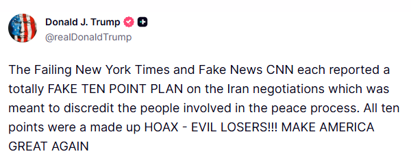 Trump Says Media Reported a 'Fake' Ten-Point Plan Intended to Undermine the Peace Process and Those Involved