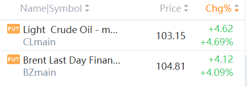 Crude oil futures surged on Thursday, wtih WTI oil futures up 4.09%, Brent crude futures up 4.69%.