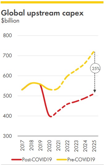 在壳牌看来,液化天然气供应方面也同样看涨。2017年至2019年,全球供应量每年增加约3000万吨。如果一切按计划进行,2020年至2025年,全球平均每年将增加1200万吨。到2025年,Cheniere Energy(LNG.US)供应的增长在很大程度上依赖于美国和加拿大的增长,这些国家最近的管道相关政策决定可能存在延期和取消的风险。但抛开政策不谈,疫情后投入相关领域的资金更少了。