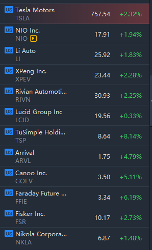 EV stocks jumped in morning trading. Tesla, Rivian, Nio, Xpeng Motors, Li Auto, Faraday Future, Tusimple and Arrival rose between 1% and 8%.