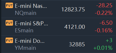 At 07:48 a.m. ET, Dow e-minis were up 3 points, or 0.01%, S&P 500 e-minis were down 6.5 points, or 0.16%, and Nasdaq 100 e-minis were down 28.25 points, or 0.22%.