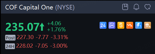 Capital One stock dipped 3% in overnight trading. The bank announced on Thursday that it agreed to acquire startup Brex for $5.15 billion, in a deal consisting of 50% cash and 50% stock. Separately, fourth quarter adjusted earnings came up short against analysts’ estimates, landing at $3.86 per share. The LSEG consensus called for $4.11 per share.