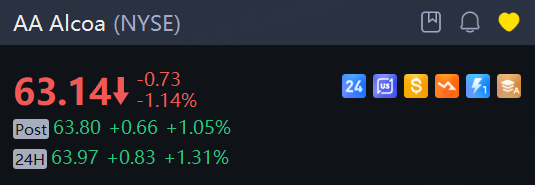 Alcoa stock rose 1.3% following better-than-expected fourth-quarter earnings.