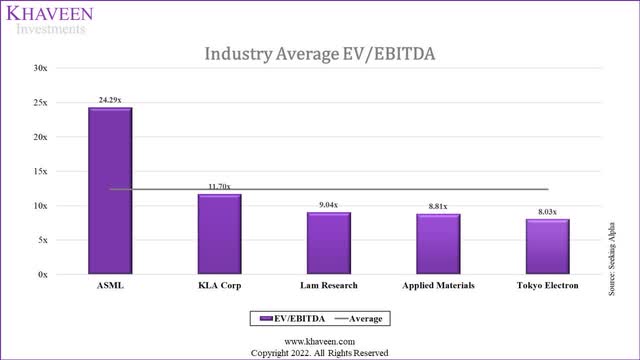 We valued the company with a DCF analysis and based our terminal value on the semicon equipment industry average EV/EBITDA of 12.37x.
