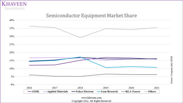 We updated our revenue projections of the company based on the company’s revenue breakdown by logic, memory, and service revenue. For its logic segment, we projected its growth based on our capex forecast of Intel, TSMC and Samsung Foundry. Moreover, we forecasted its memory growth based on our capex projections of Samsung, SK hynix, and Micron. For its service revenue, we based our forecast on its historical service revenues as a % of logic and memory revenue of 35.9% on a 2-year average. Overall, we forecasted its revenue growth to slow down to a 5-year average of 12% compared to our previous analysis of 13.2% due to the expected slowdown in memory capex growth.