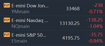 US stock futures fell on Monday, with Nasdaq 100 futures down more than 1%, S&P 500 futures down 0.8%, and Dow futures down 0.7%.