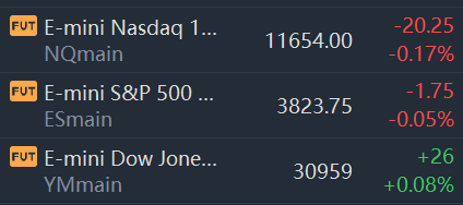 At 8:59 a.m. ET, Dow e-minis were up 26 points, or 0.08%, S&P 500 e-minis were down 1.75 points, or 0.05%, and Nasdaq 100 e-minis were down 20.25 points, or 0.17%.