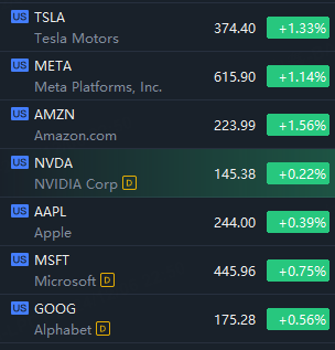 Mega-cap stocks gained in morning trading with Tesla, Amazon and Meta gaining over 1%.