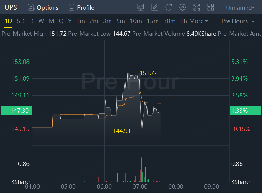 The world's biggest package delivery firm by market capitalization posted an adjusted profit of $1.43 per share for the quarter, down 35% from last year but above analysts' estimates of $1.29, according to LSEG data.