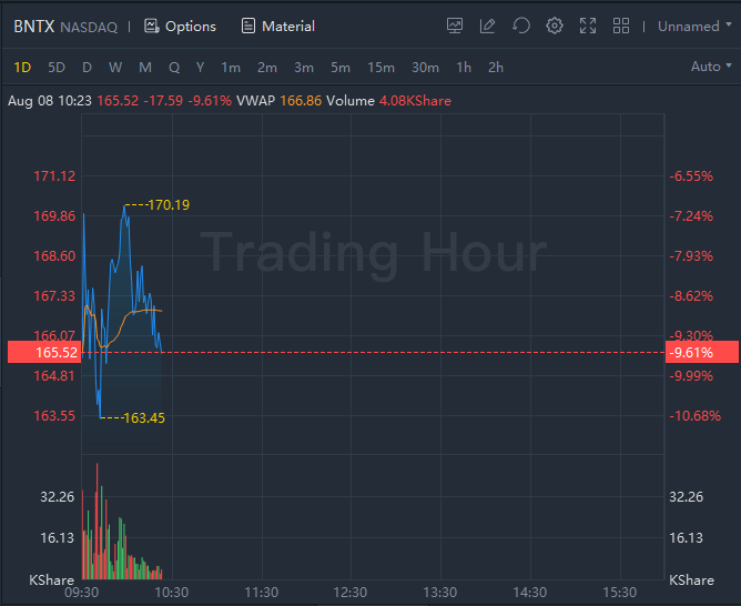 BioNTech slipped nearly 10% in morning trading after reporting lower Q2 earnings.