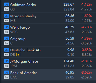 Deutsche Bank fell over 8% and Citigroup fell over 3%.
