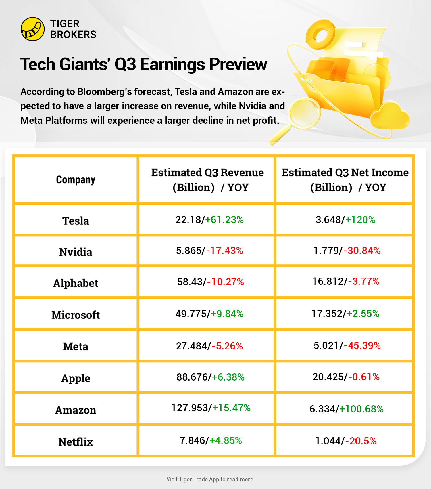 According to Bloomberg’s forecast, Tesla and Amazon are expected to have a larger increase on revenue, while Nvidia and Meta Platforms will experience a larger decline in net profit.