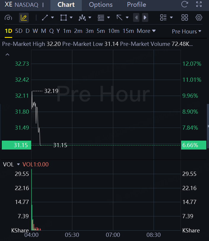 X-Energy stock rose another 7% in premarket trading, trading at $31. The stock extended its powerful debut rally after listing on Nasdaq just one day prior.