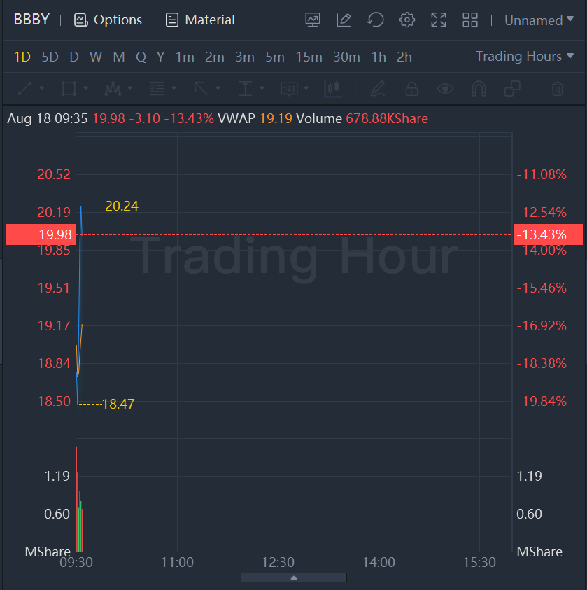 Bed Bath & Beyond stock plunged 13% in morning trading after Ryan Cohen suggested he has soured on the stock.Ryan Cohen’s RC Ventures said in a filing Tuesday with the US Securities and Exchange Commission that it might sell as much as 7.78 million shares of Bed Bath & Beyond, along with some call options. RC is the retailer’s second-largest holder after BlackRock Inc., according to data compiled by Bloomberg, with an 11.8% stake as of April 21.