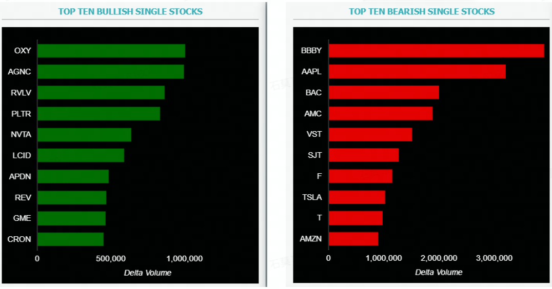 Top 10 bullish stocks: OXY, AGNC, RVLV, PLTR, NVTA, LCID, APDN, REV, GME