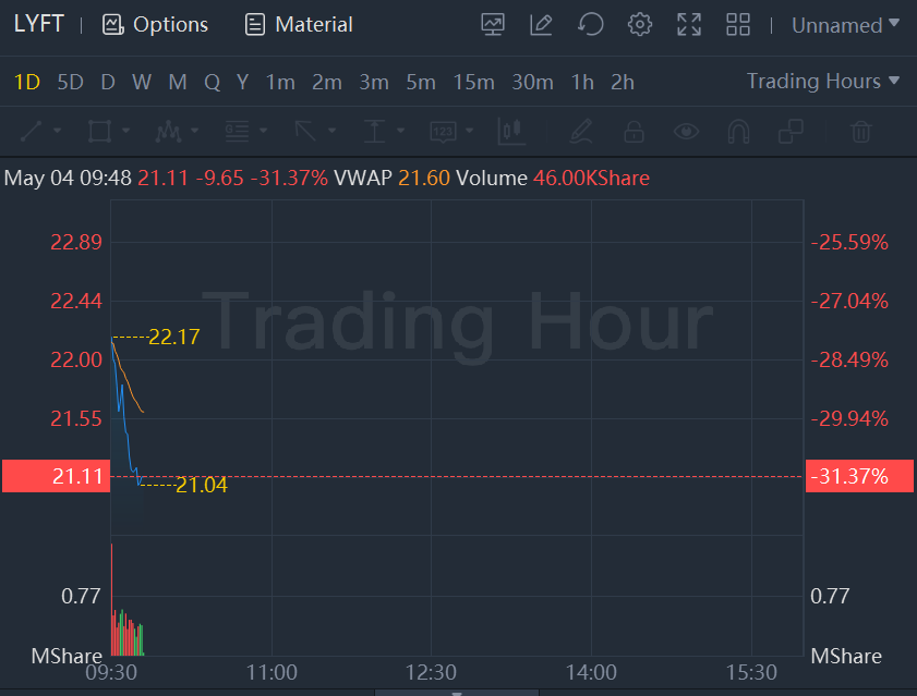 Lyft shares plunged 30% Wednesday as investors expect short-term headwinds to weigh on the company.Lyft reported better-than-expected resultson both the top and bottom lines after the bell on Tuesday. But the company provided light guidance for the second quarter and said it would have to keep spending on driver incentives due to surging gas prices, sending shares tumbling. It’s unclear how much the company plans to invest or whether it would continue into the second half of the year.