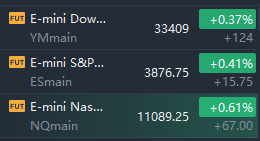 At 7:45 a.m. ET, Dow e-minis were up 124 points, or 0.37%, S&P 500 e-minis were up 15.75 points, or 0.41%, and Nasdaq 100 e-minis were up 67 points, or 0.61%.