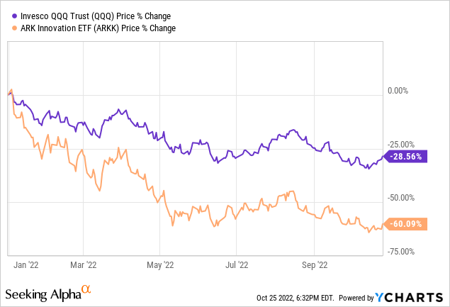 Of course, big tech (QQQ) and high growth tech (ARKK) have gotten hit even harder: