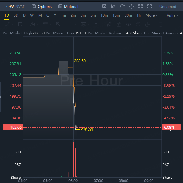 Lowe's now expects full-year comparable sales to decline 5%, compared with a fall of 2% to 4% estimated previously. Analysts on average expect a 3.4% drop, according to LSEG IBES data.