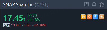 社交媒体公司Snap盘前暴跌32%。财报显示Snap去年第四季度营收13.6亿美元,小幅低于分析师预期的13.8亿美元。Snap预计一季度调整后息税折旧摊销前利润将亏损0.55-0.95亿美元,大幅低于分析师预期的亏损0.327亿美元。大摩下调Snap目标价至11美元,维持“减持”评级。