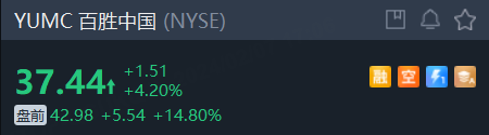 百胜中国盘前涨近15%,公司四季报好于预期,派息力度超过预期。