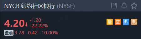 纽约社区银行盘前跌10%。纽约社区银行的股价在周二下跌超22%,触及自2000年6月以来的最低点。自1月31日发布财报以来,该银行的股价已经下跌了超过50%。股价大跌的主要原因是该银行在2023年第四季度为信贷损失设置了高达5.52亿美元的拨备,远高于市场共识的4500万美元和前一季度的6200万美元。这暗示信贷前景可能恶化。