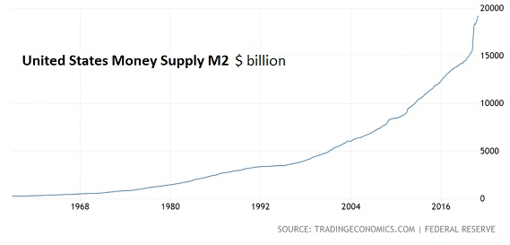 So to understand the everything bubble, let’s start at the beginning with that influx of outside money. This time it’s coming from the Federal Reserve in what can only be described as the mother of all print runs. M2, a medium-broad measure of the US money supply, has more than tripled so far in this century, and lately the arc has gone vertical, rising by nearly a third in just the past year.