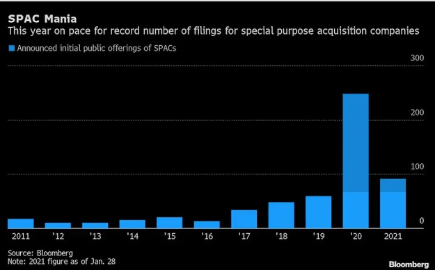 These are companies that go public without assets or earnings or any of the other impedimenta typical of IPOs. You give them your money and they’ll figure out how to put it to work. Why? Because they’re geniuses who claim to have made fortunes in the past few years, and you apparently have way too much cash and no productive uses for it. There are evenSPAC ETFsthat offer exposure to the whole “sector.”