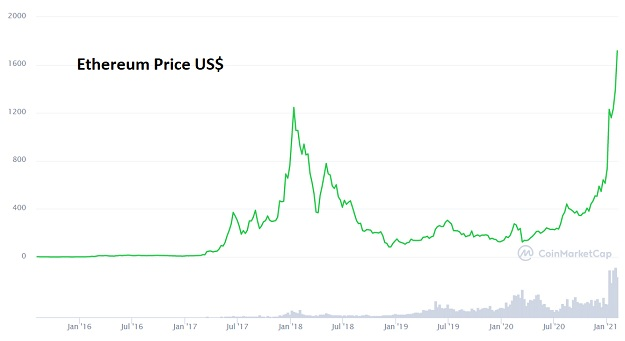 … and hundreds of lesser coins with a wide variety of future prospects (think eBay, AOL, Pets.com) also soaring on a torrent of fiat currency rocket fuel. Here’s the second most valuable crypto: