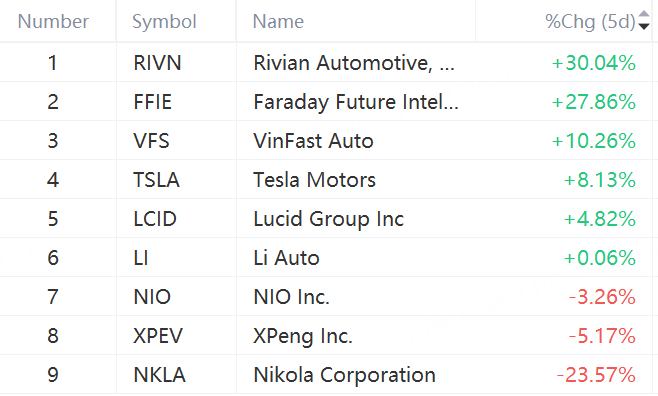 Electric-vehicle shares finished the week on a mixed note, with market leader Tesla rising over 8% ahead of crucial Q2 deliveries. Shares of Rivian reported a weekly gain of 30% after the company announced a joint venture partnership with German legacy automaker Volkswagen AG.