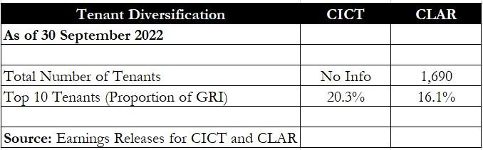 In contrast, CICT’s top 10 tenants took up one-fifth of its GRI.