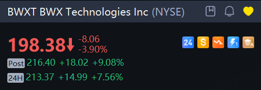BWX Technologies, a supplier of nuclear technology to the military, NASA, and commercial utilities, jumped 7.6% in overnight trading after posting strong fourth-quarter earnings and a better-than-expected 2026 outlook.