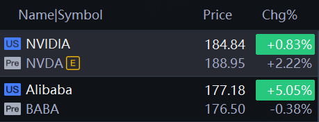 Nvidia jumped over 2% on the news; Alibaba trimmed some losses after an initial decline of 2%.