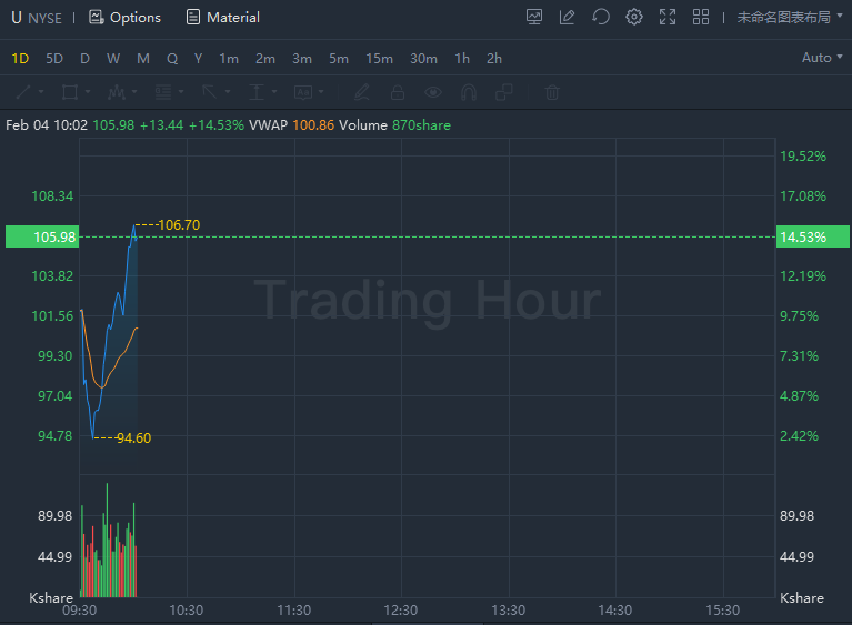 Unity Software (ticker: U) posted an adjusted loss in the period of 5 cents a share, compared with a year-earlier loss of 10 cents. Revenue in the fourth quarter rose 43% to $315.9 million from $220.3 million a year earlier.