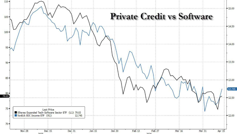 Over the past two trading sessions, the IGV Software ETF has rallied sharply from lows, lifting private credit-related stocks in tandem. Nelson Armbrust, a trader at Goldman Sachs, noted that he received "a high volume of inquiries regarding yesterday’s software rally." While the Goldman Sachs Software Tracked Index (GSTMTSFT) rose 5.07% in a single day, it remains down roughly 25% year-to-date.