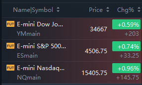 At 08:32 a.m. ET, Dow e-minis were up 203 points, or 0.59%, S&P 500 e-minis were up 33.25 points, or 0.74%, and Nasdaq 100 e-minis were up 145.75 points, or 0.96%.