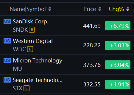 Storage shares jumped on Tuesday. SanDisk up 6.8%; Western Digital, Micron up 3% each.