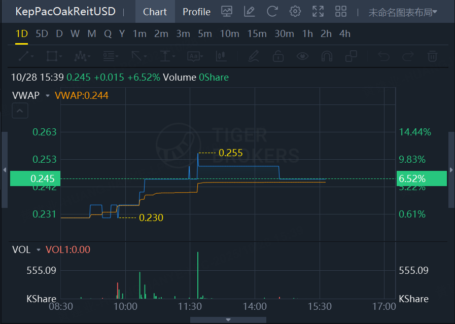 KepPacOakReitUSD rose 6.52% as of 3:39 PM on Oct 28.