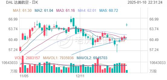 达美航空高开涨超6%。四季度调整后营收、每股收益均超市场预期。一季度展望乐观。