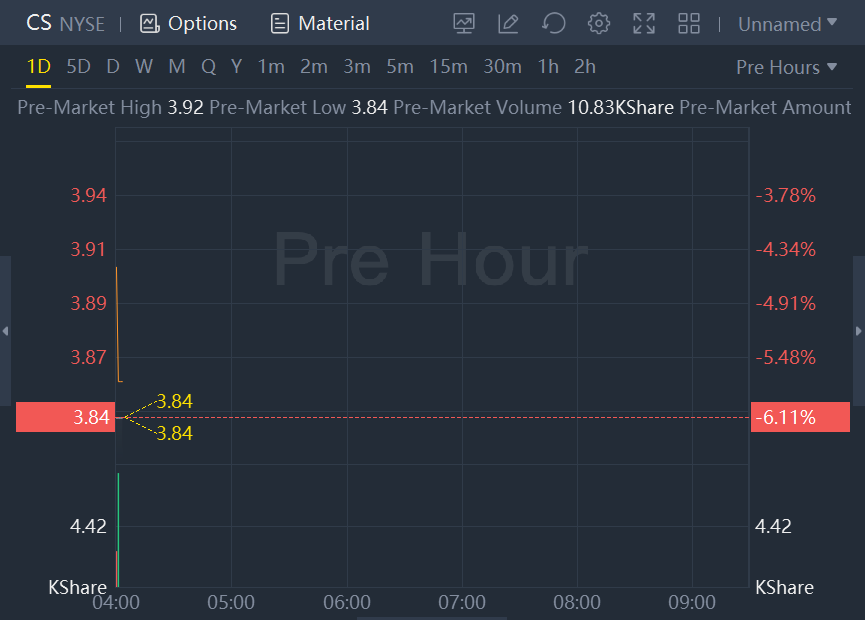 Credit Suisse shares dropped 6% in premarket trading as the company expected Q4 pre tax loss of around 1.5 billion Sfr.