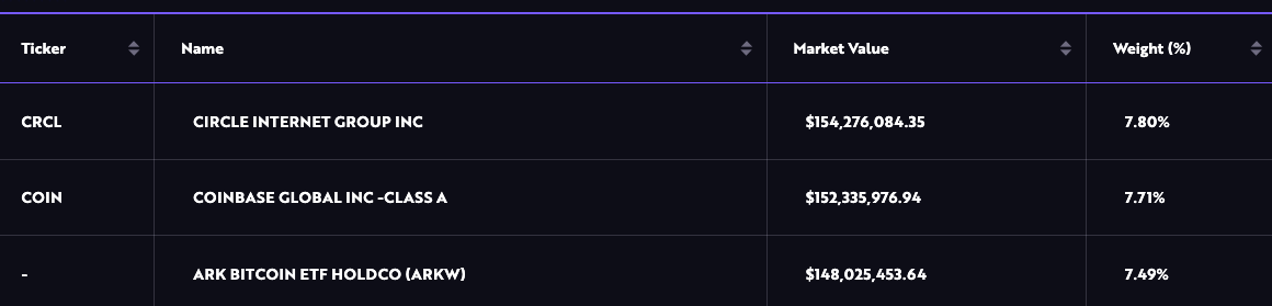 截至6月20日,ARK仍持有价值7.504亿美元的Circle股票,CRCL成为ARKW基金中占比最高的持股,权重为7.8%。