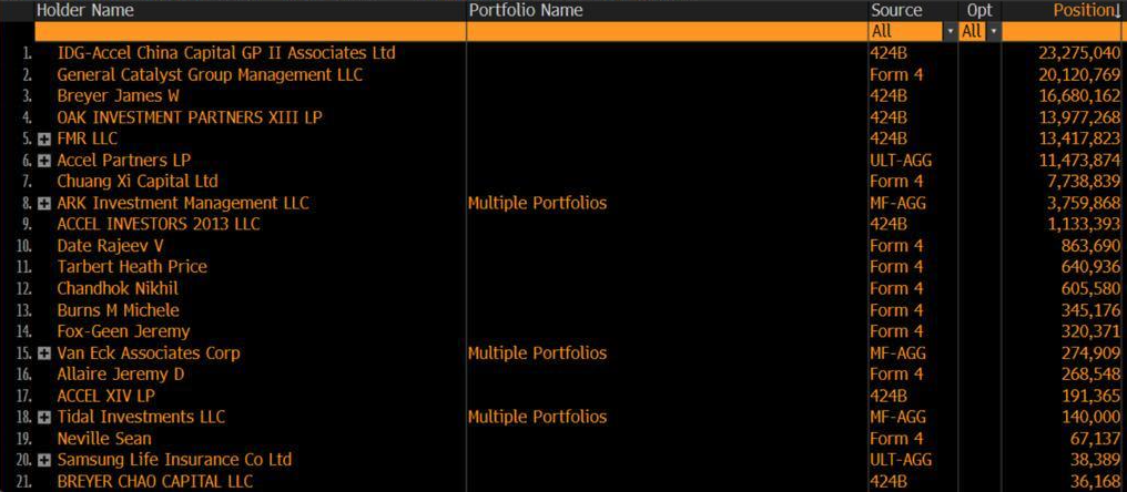 根据数据,总部位于北京的IDG-Accel China Capital Fund II是Circle的最大持股者,持有2330万股,其次是General Catalyst Group Management和James Breyer,分别持有2010万股和1670万股。