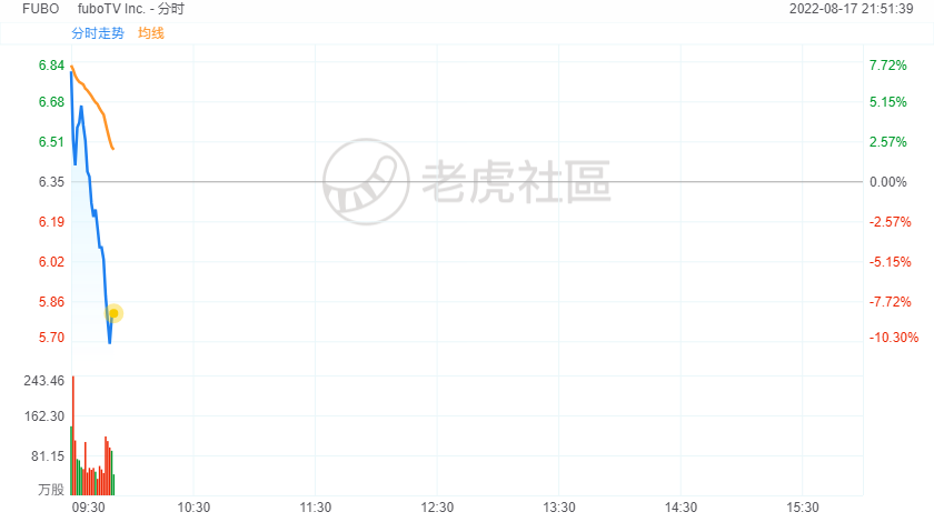 8月17日,fuboTV回调,现跌超10%,该股昨日盘中最高涨超73%。