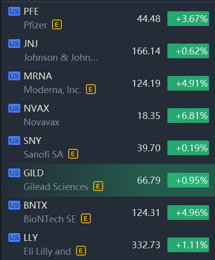 Vaccine stocks jumped in morning trading, with Novavax soaring 6.8%.