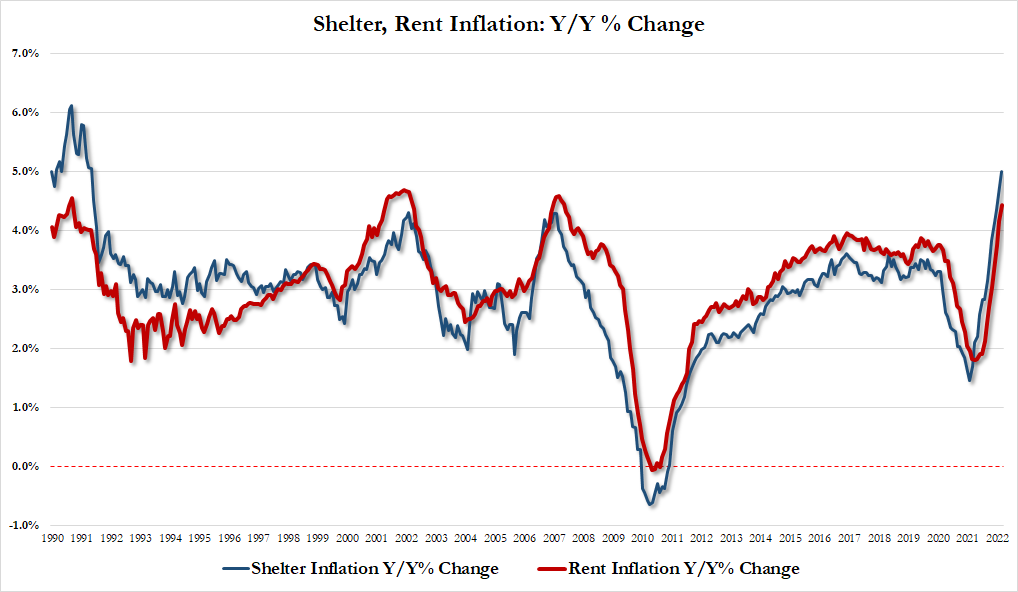 住房指数是迄今为止助推通胀增长的最大因素。3月住房通胀同比增长5.0%,高于2月的4.7%,为1991年5月以来的最高水平;3月租金成本同比增长4.44%,高于2月的4.17%,为2007年5月以来的最高水平。