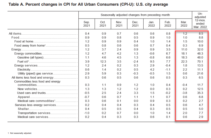 4月12日周二,美国劳工统计局公布数据显示,美国3月CPI同比增8.5%,增速再次加快,为1981年12月来的最快增速,高于市场的预期8.4%,也超前值的7.9%。CPI同比增速连续十一个月达到或高于5%。