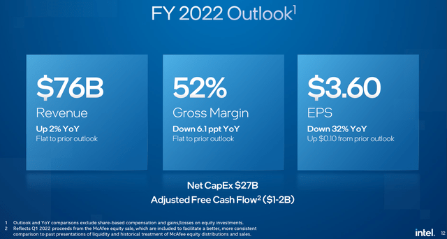 With INTC's market-leading position, scale, and management, I do not see any short-term survivability issues at all. As a matter of fact, INTC just affirmed a quite healthy 2022 outlook as shown below.