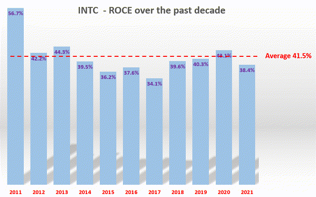 Detailed analysis of ROCE has been provided in my earlier article and I will just show the results directly. As seen, it was able to maintain a respectably high ROCE over the past decade: on average 41.5% for the past decade.