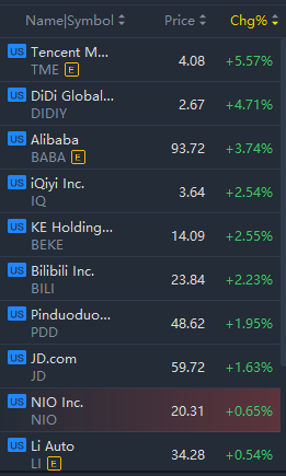 Hot Chinese ADRs turned up in morning trading, with Tencent Music rising over 5% and Alibaba rising nearly 4%.
