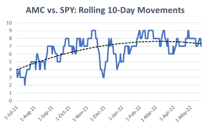 Figure 3:undefinedAMC vs. SPY: rolling 10-day movements.